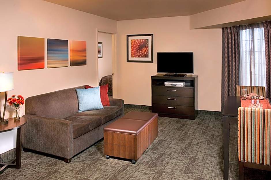 This queen studio includes a sofa, coffee table, and kitchenette with kitchenware. A 37-inch flat-screen TV with HBO® channels, DVD player, and desk.